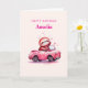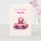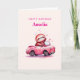 Birthday card with an adorable illustration. A happy looking sloth sitting in a sporty pink convertible. Waving as he drives by. With hearts floating upwards.