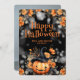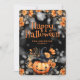 Photo Carte Halloween avec un jack-o'-lanterne en casquette noir et ornée de fleurs orange sur le devant et d'une photo à l'arrière. Personnalisez facilement cette belle carte d'Halloween avec votre photo et le nom de famille.