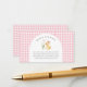 A Little Duckling Is on the Way Duck Baby Shower Enclosure Card - featuring a little baby duck sitting next to pink flowers and wearing a pink coquette bow. Enclosure card is surrounded in adorable blush pink gingham with modern typography for a minimalist feel. Books for Baby Card is part of a Baby Shower Collection.