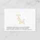 Cette carte d'accompagnement présente un monogramme classique en feuille d'or, idéal pour ajouter une touche luxueuse aux ensembles de mariage ou à la papeterie d'événements spéciaux. Les initiales entrelacées "T & M" dans une police serif offrent un look propre et soigné qui complète toute invitation formelle.