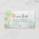 Background is a dreamy deep green watercolor with forms of hills and foliage.