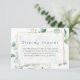 Invitation de douche de mariage à l'aquarelle d'eucalyptus avec cadre géométrique doré et typographie élégante personnalisable selon les spécificités de votre événement.