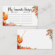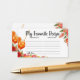 "Love at First Spritz" Ma carte de boîtier de recette préférée | Recueil de livres de Fêtes des mariées Citrus Aidez la future mariée à construire sa collection culinaire avec notre délicieuse "Love at First Spritz" My Favorite Recipe Enclôture Card! Cette carte de charme complète parfaitement votre thème "L'amour au premier Spritz", avec des oranges d'agrumes vibrantes et une verdure luxuriante. Il est conçu pour que les clients invitations et ludiques partagent leurs recettes préférées pour que le couple heureux puisse profiter ensemble de sa nouvelle vie. Cette carte de recette de douche nuptiale est un complément indispensable à vos invitations, afin que les invités aient la possibilité de choisir et d'écrire leurs recettes chères avant l'événement. Les cravates de design d'agrumes joyeux dans magnifiquement avec votre douche globale esthétique, créant une sensation de cohésion et d'invitation pour votre célébration. C'est une façon merveilleuse de créer un livre de cuisine personnalisé rempli de plats éprouvés d'amis et de famille, un véritable souvenir unique et pratique pour les jeunes mariés. Customisez facilement cette carte d'enclos recette avec des instructions claires pour les invités sur où écrire leur recette et où placer la carte à la douche. Vous pouvez personnaliser les invites, les polices, les couleurs et l'agencement de votre douche pour qu'ils correspondent parfaitement au thème et à la palette de couleurs uniques de votre douche. Ces cartes de boîtier de haute qualité sont dimensionnées pour s'adapter parfaitement aux invitations standard. Coordonnez ces magnifiques "Love at First Spritz" My Favorite Recipe Encluse Cartes avec vos invitations, signe de bienvenue, et autres papeterie de fête pour une célébration parfaitement cohésive et mémorable pour la future mariée. Cliquez sur "Customiser maintenant" pour personnaliser votre "Love at First Spritz" Ma recette préférée Carte de boîtier et aider le stock de la cuisine des jeunes mariés avec amour! l'amour au premier spritz carte de recette, la recette de douche nuptiale d'agrumes, carte de boîtier de recette préférée, jeu de carnet de douche nuptiale, carte de recettes oranges, activités de douche nuptiale amusantes, collection de recettes sur mesure, jeu de douche botanique, jeu de mariée botanique, recette du trus wedding shower, échange de recettes personnalisées