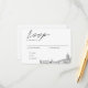 Mariage de script minimaliste classique carte de boîtier RSVP personnalisée avec vos informations. Entrez l'outil de conception Zazzle pour une personnalisation plus poussée, comme l'emplacement de texte ou pour ajouter une quatrième option de repas. Assurez-vous de comparer les différents types de papier pour sélectionner votre texture préférée et de vérifier la collection complète pour acheter les enveloppes de publipostage correspondantes.