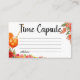 Carte de boîtier de Fête des mariées à capsule temps "Love at First Spritz" | Citrus Memory Keepsaké Créez une mémoire belle et durable pour la future mariée avec notre carte de boîtier Fête des mariées Time Capsule "Love at First Spritz" ! Cette carte de charme complète parfaitement votre thème "L'amour au premier Spritz", avec des oranges d'agrumes vibrantes et une verdure luxuriante. Il est conçu pour les invités invitations ludiques à apporter un message spécial ou un petit objet à une capsule temporelle pour le couple heureux d'ouvrir des années à venir. Cette carte d'enceinte pour capsule de temps de douche nuptiale est un complément indispensable à vos invitations, afin que les invités aient la possibilité de préparer leurs contributions à l'avance. Les cravates de design d'agrumes joyeux dans magnifiquement avec votre douche globale esthétique, créant une sensation de cohésion et d'invitation pour votre célébration. C'est une façon merveilleuse de recueillir des prédictions, des conseils et des souvenirs sincères que le couple chérira lorsqu'ils ouvriront la capsule temporelle pour un futur anniversaire. Customisez facilement cette carte-capsule temporelle avec des instructions claires pour les invités sur ce qu'il faut inclure et où placer leurs contributions (par exemple, une boîte spéciale ou un pot à la douche). Vous pouvez personnaliser les invites, les polices, les couleurs et l'agencement de votre douche pour qu'ils correspondent parfaitement au thème et à la palette de couleurs uniques de votre douche. Ces cartes de boîtier de haute qualité sont dimensionnées pour s'adapter parfaitement aux invitations standard. Coordonnez ces belles cartes de Fête des mariées Time Capsule "Love at First Spritz" avec vos invitations, le signe de bienvenue, et d'autres papeterie de fête pour une célébration parfaitement cohésive et mémorable pour la future mariée. Cliquez sur "Customiser maintenant" pour personnaliser votre "Love at First Spritz" Time Capsule Fête des mariées Enclôture Card et créer un trésor inestimable pour l'avenir! amour au premier spritz capsule de temps, citrus bridal shower keepsaké, time capsule carte d'enceinte, jeu de mémoire de douche nuptiale, capsule de temps orange, amusante activité de douche nuptiale, carte capsule de temps personnalisée, jeu botanique, citral us jeu wedding shower, message personnalisé futur