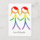 Cette carte d'enceinte présente un design simple et magnifique à inclure avec vos invitations de mariage. Le graphique en haut représente deux femmes, sous la forme d'élégantes figurines en bâton, se tenant la main. Les figures sont colorées dans un bel arc-en-ciel, symbolisant l'amour et la diversité. Cette carte est une façon merveilleuse d'apporter une touche cohérente et significative à votre papeterie tout en fournissant aux clients des détails importants comme les directions, les logements ou les informations d'enregistrement.