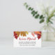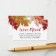 Avez-vous besoin de faire une annonce de déménagement ? Cette carte jointe comporte des feuilles d'automne en haut et deux emplacements pour votre texte personnalisé. Au milieu, vous pouvez modifier le texte affiché « Nous avons déménagé » pour votre message personnalisé. En bas, modifiez le texte pour ajouter votre nom et votre nouvelle adresse.