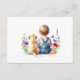 Envoyez cette douce petite carte "Apportez un livre pour bébé" dans votre invitation baby shower pour encourager les invités de baby shower à apporter un livre pour bébé, et d'écrire une note à l'intérieur. Petite petite fille caucasienne douce assise dans les fleurs avec son chien de laboratoire blanc.
