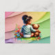 Envoyez cette douce petite carte "Apportez un livre pour bébé" dans votre invitation baby shower pour encourager les invités de baby shower à apporter un livre pour bébé, et d'écrire une note à l'intérieur. Petite fille afro-américaine assise avec son ours en peluche dans un champ de fleurs, d'oiseaux et de papillons.