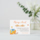 Customisez et insérez cette "Demande de Baby shower pour Citrouilles d'automne" avec l'invitation à l'intérieur de l'enveloppe afin que vos invités connaissent vos demandes. (1) Pour plus de personnalisation, cliquez sur le lien "customiser plus loin" et utilisez notre outil de conception pour modifier ce modèle. (2) Si vous préférez des papiers plus épais, vous pouvez choisir le type de papier Signature ou Premium. (3) Si vous avez besoin d'aide ou d'articles correspondants, veuillez me contacter.