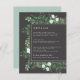 Conçue pour coordonner avec notre collection de mariages de serre, cette carte d'information botanique élégante et saisissante comporte une bordure de vert aquarelle feuillage, de feuilles botaniques et de minuscules fleurs blanches encadrant vos principaux détails mariages, comme les chambres d'hôtel, les informations de bienvenue de la réception, le site Web et plus sur un riche arrière - plan de couleur terre.