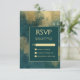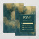 Cette carte élégante et moody mariage RSVP boîtier dispose d'un arrière - plan turquoise et doré abstrait peinture à l'aquarelle. Customisez le texte de couleur or dans des polices élégantes sur un rectangle turquoise foncé. La conception abstraite est répétée au dos de la carte.
