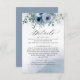 Design rose bleu poussiéreux aquarelle et feuilles eucalyptus avec élégant script