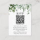 Carte RSVP minimaliste moderne avec votre QR Code inclut du lierre Botanique Aquarelle, des feuilles de fougères et de sauge. Sage Green Back.