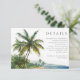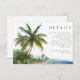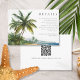 Une élégante aquarelle tropicale palmier plage détails mariage carte d'enceinte avec typographie chic. Ajoutez l'adresse de votre site Web mariage et le code QR au verso. Conçu par Thisisnotme©