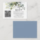 Carte RSVP minimaliste moderne avec votre QR Code inclut Watercolor Botanical Greenery. Bleu Dusty Back.