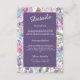 Cette carte de boîtier mariage est disponible en différentes tailles, formes et papiers. Il est personnalisable avec votre réception, hébergement, détails, monogrammes et autres arrière - plans. Il présente un harmonieux mélange de fleurs sauvages d'aquarelles fleuris et de verdure. Le vernis violet et lilas minimal est destiné à votre personnalisation.