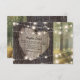 Cartes de réception de mariage en plein air rustiques avec un cadre romantique de forêt, des lumières scintillantes en guirlande, un vieil arbre rustique avec un cœur sculpté présentant les détails de votre réception de mariage.