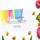 Belle carte de réception de mariage arc-en-ciel avec de jolies touches de peinture artistique pleine de couleurs vives. Cette carte de détails colorée est parfaite pour un couple artistique ou un mariage gay et lesbien. Gaie et amusante pour une cérémonie d'été.