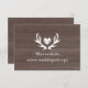 Carte de boîtier arrière - plan bois rustique brun cerf mariage. Modèle design élégant pour des informations supplémentaires comme l'adresse du site Web. Idéal pour un mariage romantique à tout moment de l'année. texture Brown en bois avec icône de coeur défraîchi.