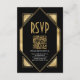 Art Déco Gold Noir QR Code Mariage RSVP. L'élégance des années 20. Générer automatiquement un code QR sur votre site Web mariage pour la commodité de vos invités à répondre en ligne.