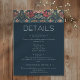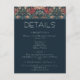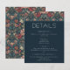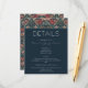 Indulge in the enchantment of the past with our vintage floral wedding details enclosure card. Inspired by the iconic patterns of William Morris, this design feature a mesmerizing blend of teal blues, pinks, creams, and green. The intricate floral patterns, reminiscent of the Art Nouveau era, this design adds vintage allure to your special day. The elegant vintage font on a dark blue background provides a striking contrast to the vibrant floral backdrop. This timeless design captures the essence of classic romance, making it the perfect choice for couples seeking a truly unique and unforgettable invitation. Created by Simply Farmhouse Press.