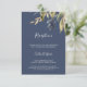 Cette carte d'encarts de réception marine verdoyante d'automne est parfaite pour un mariage de automne. Le design rustique moderne présente des feuilles bleu marine, vert sauge et or avec des branches de fleurs bleu foncé. Personnalisez cette carte détaillée de boîtier avec vos informations de réception et incluez également votre adresse de site mariage !