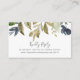 Ce site mariage de verdure d'automne RSVP carte boîtier est parfait pour un mariage de automne. Le design rustique moderne présente des feuilles bleu marine, vert sauge et or avec des branches de fleurs bleu foncé.