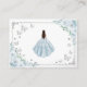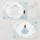 Baby blue silver and white Quinceanera reception details enclosure cards. Features brunette girl in ball gown dress, script font, silver butterflies, roses and tiara. Perfect for an elegant princess style glam celebration. Personalize with your own details.