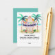 Fun, retro surf theme diaper raffle enclosure card featuring watercolor palm trees, ocean waves, surfboard and hibiscus flowers. Perfect for beach, coastal and tropical baby showers. Art by KL Stock