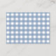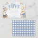 Cette carte d'encart de tombola de couches présente une illustration de style comptine pour enfants à l'aquarelle. Cette illustration comprend la mère l'oie, les trois souris aveugles, la petite Bo-Peep, le petit garçon bleu, Humpty Dumpty, Mademoiselle Muffet, la vache et la lune, l'assiette et la cuillère, Hickory Dickory, et le chat et le violon. Le verso présente un motif de carreaux de buffle bleu assorti.
