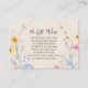 Arrière - plan beige moelleux avec aquarelle peinte à la main avec des fleurs sauvages clairs et aérés, feuillage feuillu et un papillon. Cette carte de boîtier qui fait savoir à vos invités que vous aimeriez s'ils ont apporté leurs cadeaux non emballés à tous pour voir! Peinte et dessinée graphiquement par Audrey Jeanne Roberts, artiste et designer de renommée internationale, copyright.