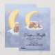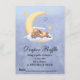 Raffle de couche baby shower avec la carte "Apportez un paquet de couches dans n'importe quelle taille" avec un adorable lapin dormant sur la lune.