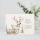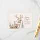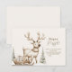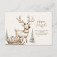 Célébrez un baby shower d'hiver avec cette adorable invitation boisée, avec un renne beige doux tirant un traîneau en bois plein de cadeaux à travers une forêt enneigée. Des sapins gelés neutres et des détails minimalistes de chutes de neige créent une scène sereine et neutre pour les réunions de vacances. Un charmant mélange de chaleur rustique et de simplicité scandinave.