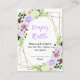 Cette belle et élégante carte d'enclos en raphia à couche présente des fleurs d'aquarelle violette et du feuillage sur un cadre géométrique doré. Le texte combine écriture manuscrite et polices serif pour un look élégant et moderne. Il est parfait pour un baby shower rustique de printemps.