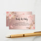 Prévoir une demande de livre, une notice de billet pour un baby shower. Un arrière - plan rose à gradient or. Décoré d'or rose, de fleurs roses rousses, d'herbe de pampas et de papillons. Envoyer ces cartes de boîtier avec les invitations de douche bébé correspondantes