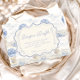 Un design doux et vintage avec des nœuds bleus délicats, des détails rayés doux et des illustrations charmantes de jardin de myrtilles. L'artwork de style toile avec des animaux adorables et des paniers de fruits crée une atmosphère de conte de fées classique dans une palette de bleu poudre doux. Le cadre central orné ajoute de l'élégance tout en gardant l'apparence générale légère, raffinée et intemporelle. Parfait pour une baby shower avec un thème de jardin doux et une touche de charme traditionnel.
