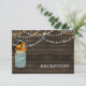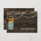 Bois rustique de Barnwood, feux à cordes pendantes avec feuilles d'automne dans un bocal en maçon invitation de réception de mariage. Produits correspondants également disponibles.