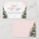 Baby showers pour carte d'enclos pour bébé avec un arc rose avec des flocons de neige, un pin enneigé, parfait pour un baby shower à thème hivernal.