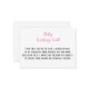 Contribution monétaire Twin Baby Girls Wishing Well Enfermer Card Introduction de la contribution monétaire Twin Baby Girls Wishing Well Enfermer Card, une façon charmante et pratique de demander des cadeaux monétaires pour les nouveaux ajouts à votre famille. Célébrez l'arrivée joyeuse de vos petits bouquets de joie tout en permettant à vos proches de contribuer à leur avenir. Cette carte de boîtier magnifiquement conçue est soigneusement conçue pour correspondre à n'importe quel thème ou style de baby showers jumeaux. La carte présente un design minimaliste et élégant, "Baby Wishing Well", symbolisant les voeux et les bénédictions de la famille et des amis. Cette carte d'enceinte offre une taille compacte et portable, ce qui vous permet d'inclure facilement avec vos invitations à la douche pour bébé ou à l'écran lors de l'événement. Le stock de cartons de haute qualité assure la durabilité, en préservant son état pur comme un gardien chéri pour les années à venir. Le but de la Contribution monétaire Baby Wishing Well Enfermer Card est de demander des cadeaux monétaires à vos invités. Il leur permet de contribuer librement, selon leurs souhaits, que ce soit pour le futur fonds d'éducation du bébé, les services essentiels de garderie ou d'autres besoins. En offrant cette option, vous donnez à vos proches l'occasion de faire un geste utile et pratique qui favorisera le bien-être et le développement du bébé. La personnalisation est une brise avec l'interface conviviale de Zazzle. Cliquez simplement sur le bouton "Personnaliser" et personnalisez la carte avec le nom du bébé, les détails de l'événement, ou tout message supplémentaire que vous souhaitez inclure. Cette flexibilité garantit que la carte de boîtier devient une expression personnalisée de votre gratitude. Faites de votre baby shower une occasion mémorable où l'amour, le soutien et les bénédictions sont offerts à votre famille grandissante. Demandez des contributions monétaires avec grâce et style en utilisant la Contribution monétaire Baby Wishing Well Enclôture Card. Commandez la vôtre aujourd'hui et créez une belle et commode façon pour vos proches de montrer leur affection et leur soutien pour votre précieux petit. La carte comporte les mots suivants : "Les filles jumelles sont en route, un double plaisir, Comme nous célébrons leur voyage, jour et nuit. Au lieu de cadeaux, un trésor monétaire que nous demandons, Pour s'assurer que leurs rêves sont éternellement bénis. c) KalyValy