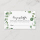 Cette carte d'enclos à tirage de tombola à calligraphie eucalyptus est parfaite pour un baby shower moderne. L'aménagement comprend des branches et des feuilles d'eucalyptus botaniques élégants dessinés à la main dans des aquarelles.