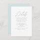 La carte de détail romantique du mariage bleu pastel comprend un magnifique script de calligraphie et un délicat dossier bleu de la carte. Veuillez consulter cette jolie collection de mariages bleus pour coordonner les invitations de mariage et les cartes de réponse.
