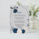 Carte D'accompagnement bleu marine & fleurs blanches argent détails géomé
