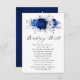 Elégant mariage à thème bleu royal blanc argenté souhaitant bonne carte avec élégant bouquet de bleu royal, marine, argent, blanc pur de couleur rose bourgeons et sauge vert eucalyptus feuilles. Veuillez me contacter pour toute aide sur la personnalisation ou si vous avez besoin d'un autre produit avec ce design.