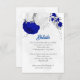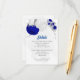 Romantique bleu royal & fleurs blanches avec argent feuille botanique mariage détails carte d'enceinte. Les détails de la parties scintillant sont simulés.