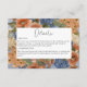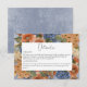 Ce design simple mais élégant de carte de détails de mariage comprend un bel assortiment d'hydrangées aquarellées et d'autres fleurs de bleus périwinkle poussiéreux, rouille claire et foncée, et crème avec verdure. Le texte s'affiche sur un arrière - plan blanc voûté. L'arrière - plan est un doux bleu terne poussiéreux qui est affligé de blanc. Ce design fait partie de la série de cartes Rustic Blue & Burnt Orange Rust Floral Monogram mariage. Créé par Simply Farmhouse Press.