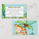 A Blue Cute Monkey Baby Boy on the back correspond à d'autres produits Little Monkey. Avec une boite bordée verte jungle pour la demande de livre et le texte. Aidez les hôtes à garder un souvenir durable de ce baby shower avec la rime simple qui leur demande d'inclure leur note personnelle dans un livre pour bébé. Le mignon petit singe et le feuillage de la jungle du déjeuner sont un joyeux ajout à votre invitation baby shower.