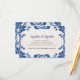 This Blue Floral Elegant Fiesta Spanish Wedding Enclosure Card design features delicate blue floral and swirl motifs inspired by traditional Mexican Talavera pottery, arranged elegantly in the corners. The deep blue hues contrast beautifully against the soft, textured white background, creating a clean and refined look. Ideal for wedding invitations or formal event stationery, this design adds a touch of cultural charm and timeless elegance.