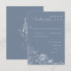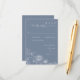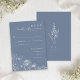 The soft periwinkle blue background creates a serene and elevated look, while the clean layout provides space for guest responses, attendance, and optional entrée selections. The coordinating back features a simple floral illustration and personalized monogram, offering a cohesive and keepsake-worthy finish.