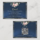 Blush Floral, QR Code - Blue Enclosure Card features a blush pink floral bouquet on a blue background framed with ribbon, details for more information on the front and QR code on the back. Designed to coordinate with the "Floral & Foil Botanical Wreath" Wedding Collection. To change details, click «Personalize». To move the text or change the text size, font, or color click «Click to customize further»